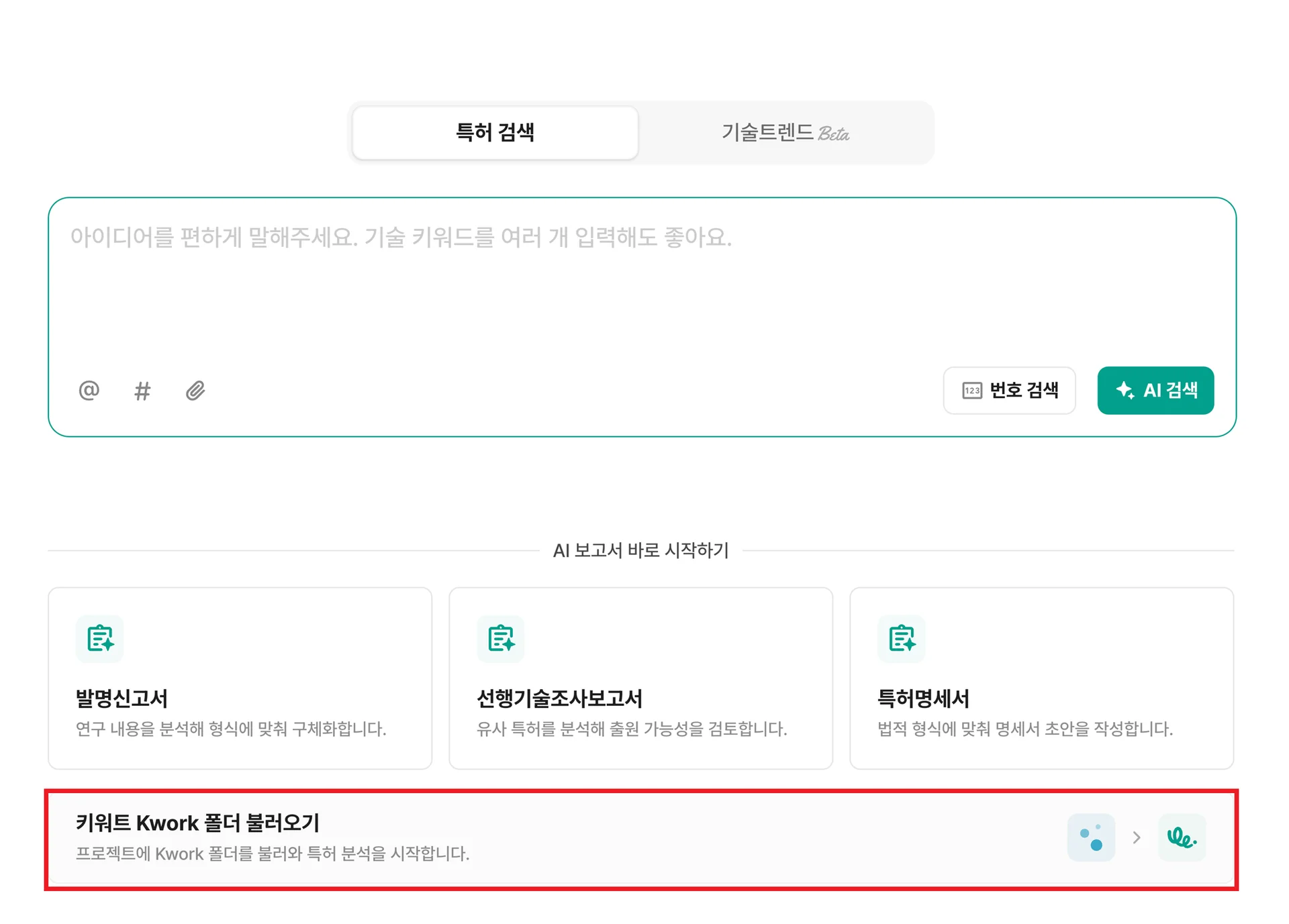 기존에는 키워트 Kwork에서 정리한 특허를 keywert Insight에서 분석하기 위해 다시 검색하거나 별도로 저장하는 과정이 필요했습니다.
