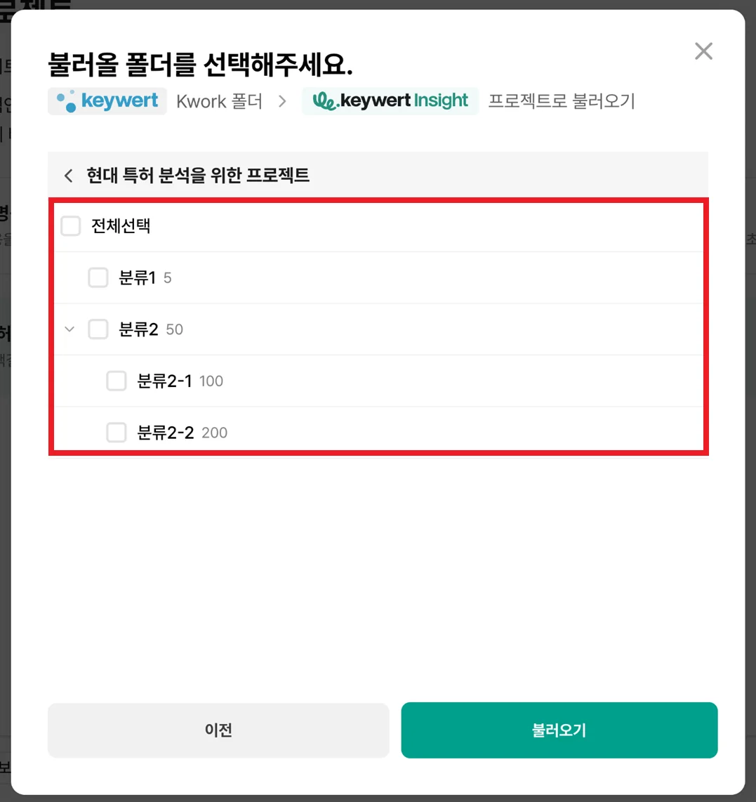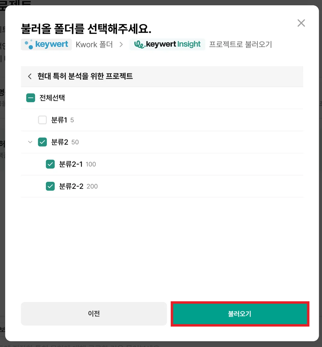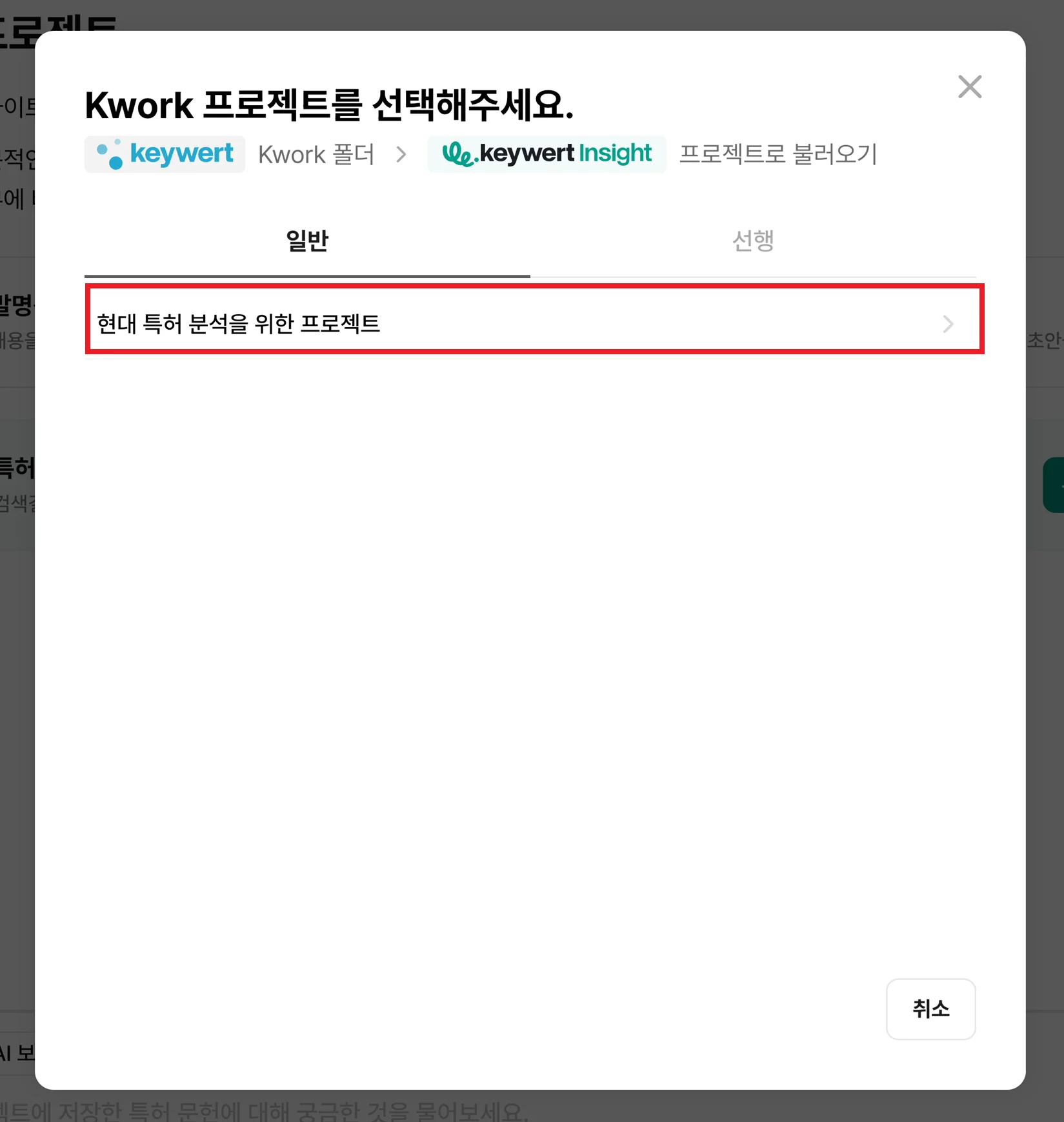 keywert Insight 프로젝트 선택