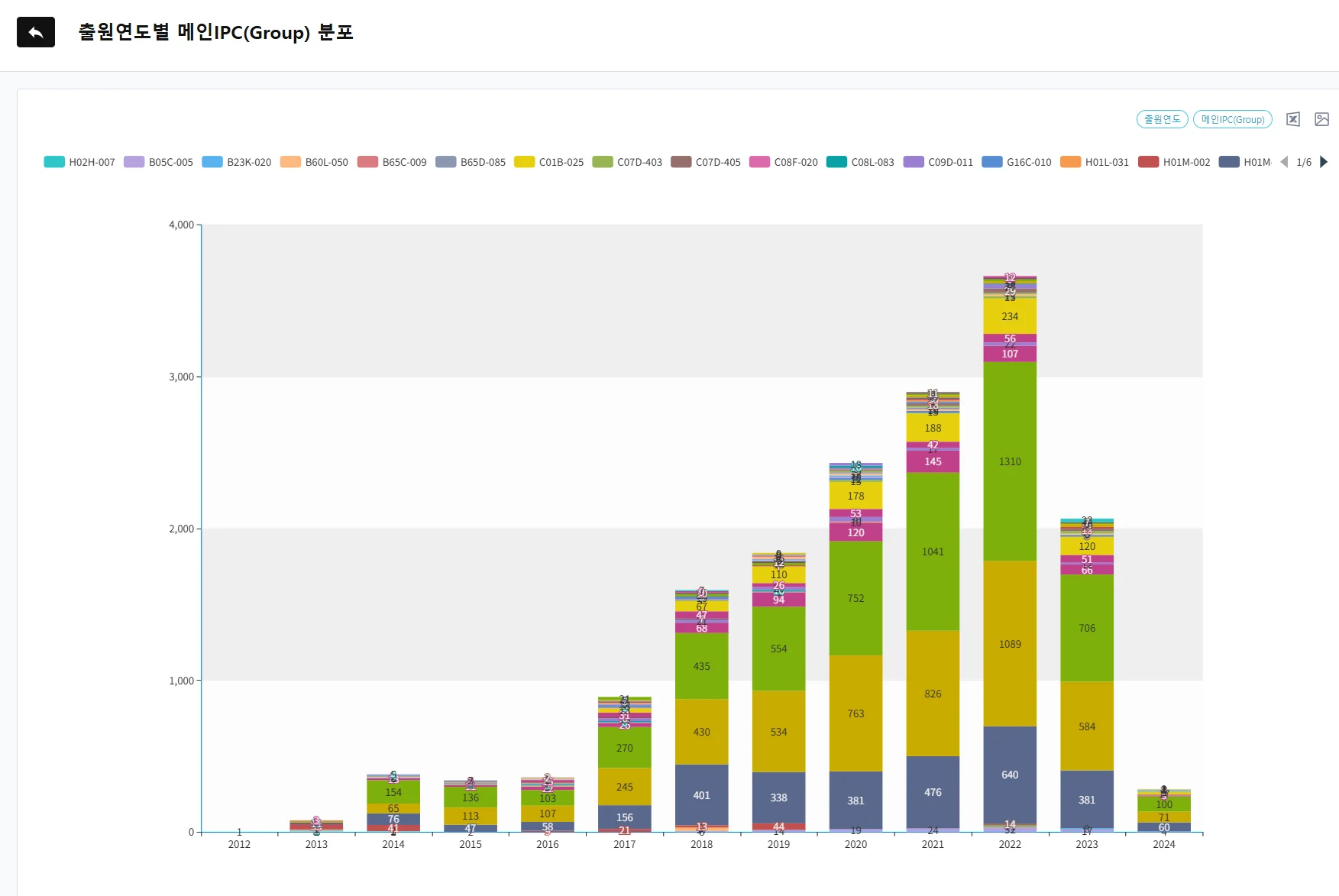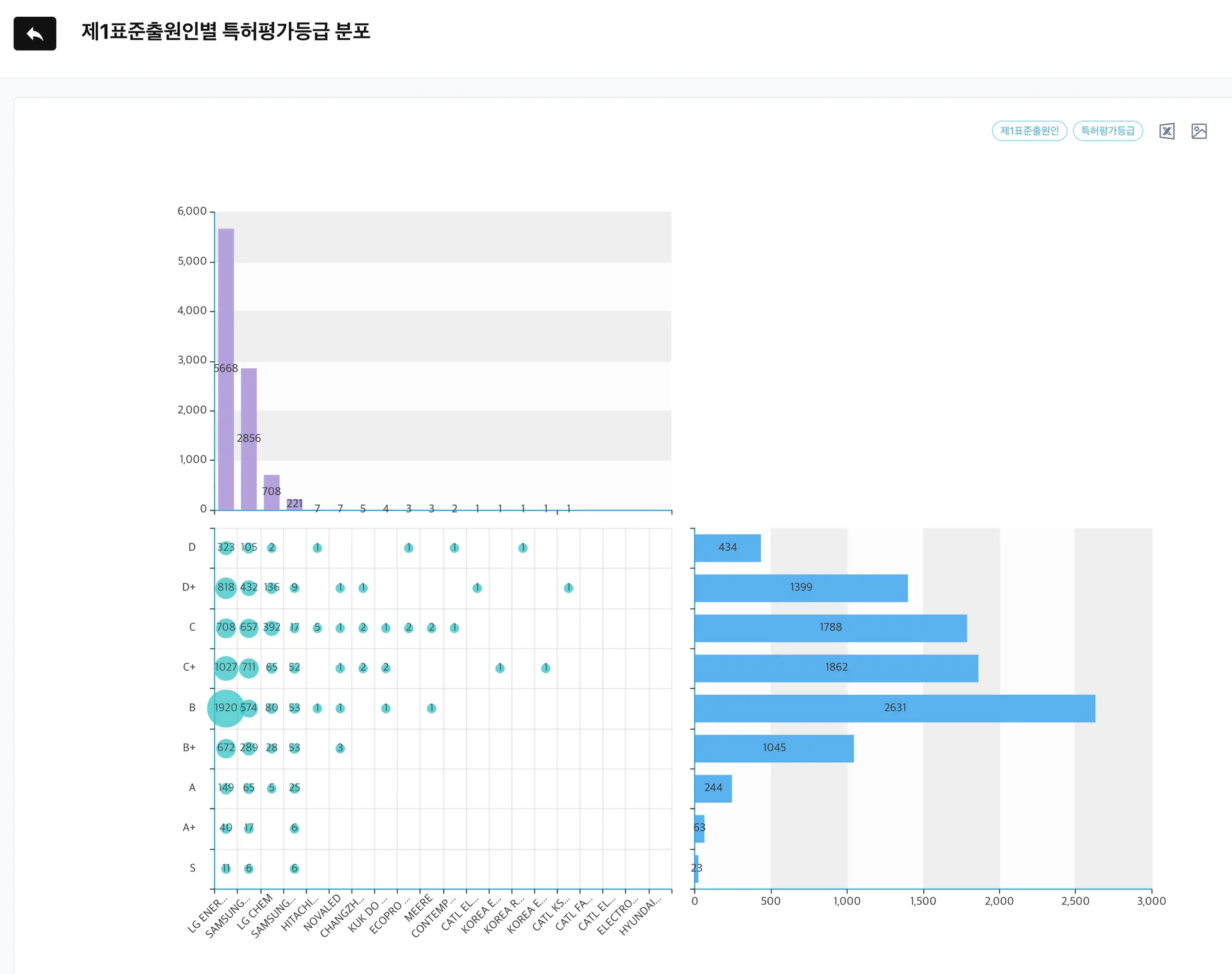 경쟁사 트렌드 분석 | AI가 유사특허 자동 분류, 주요 키워드 클러스터 시각화 | 특정 기술군의 출원 동향, 주요 출원인, 연도별 변화 파악 및 시각화 |