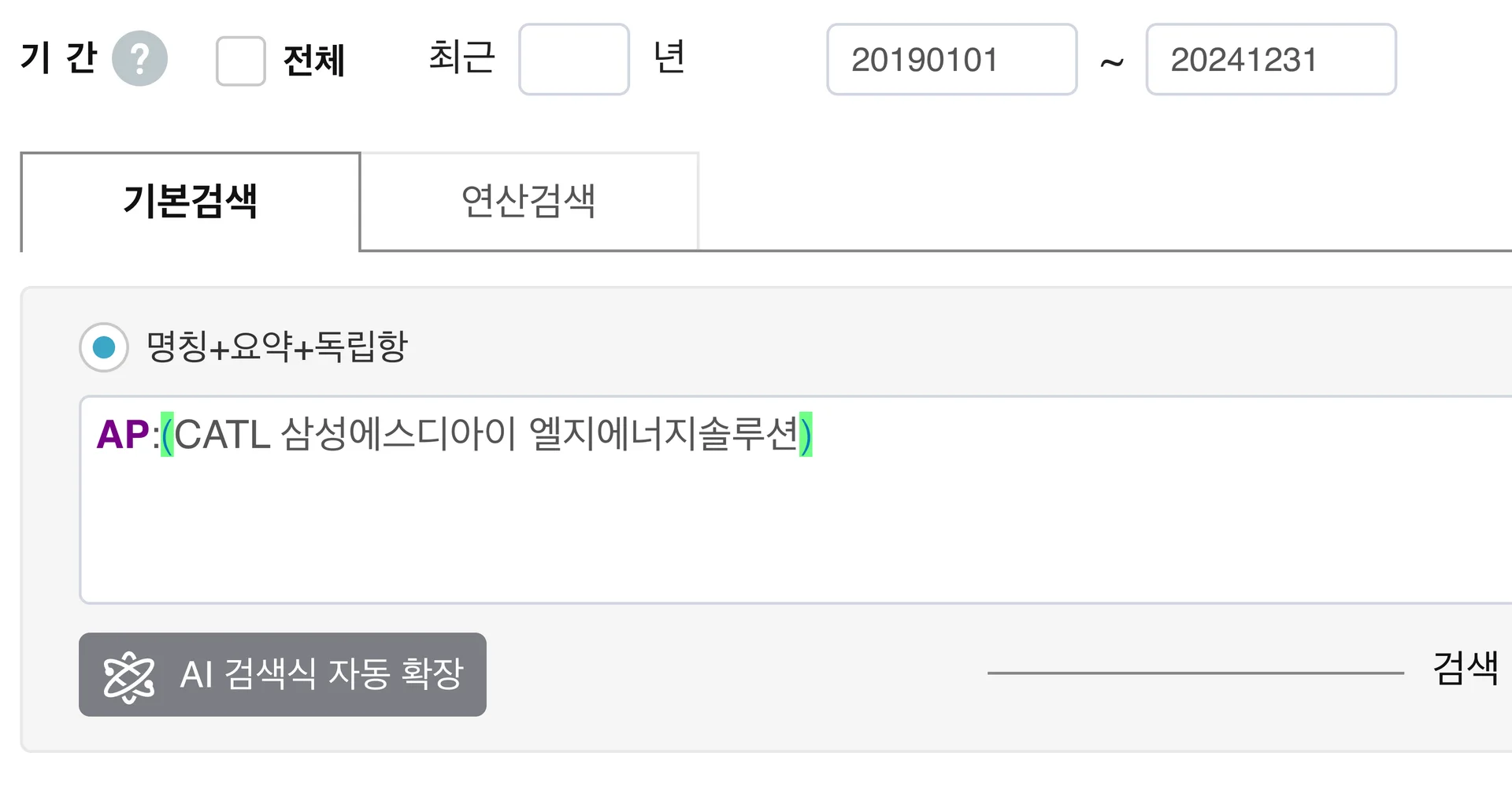 IPC 코드, 출원인, 특정 키워드 조합으로 정확한 검색이 필요할 때
