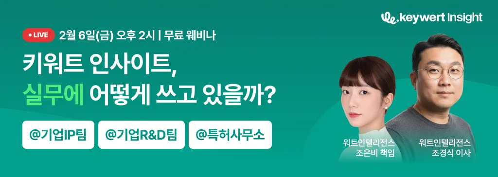 AI 특허 리서치 솔루션 ‘키워트 인사이트’ 우리 조직에서는 어떻게 활용할 수 있을지 궁금하셨다면 이번 웨비나를 주목해 주세요!