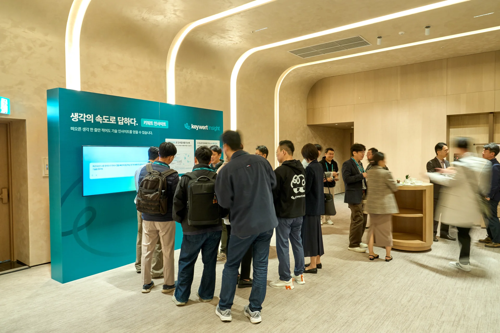 행사장 로비에는 키워트 인사이트의 핵심 기능을 소개하는 신제품존이 운영되었습니다. 참가자들은 상세 설명을 들으며 실제 업무 효율화에 어떻게 기여할지 체감했습니다.