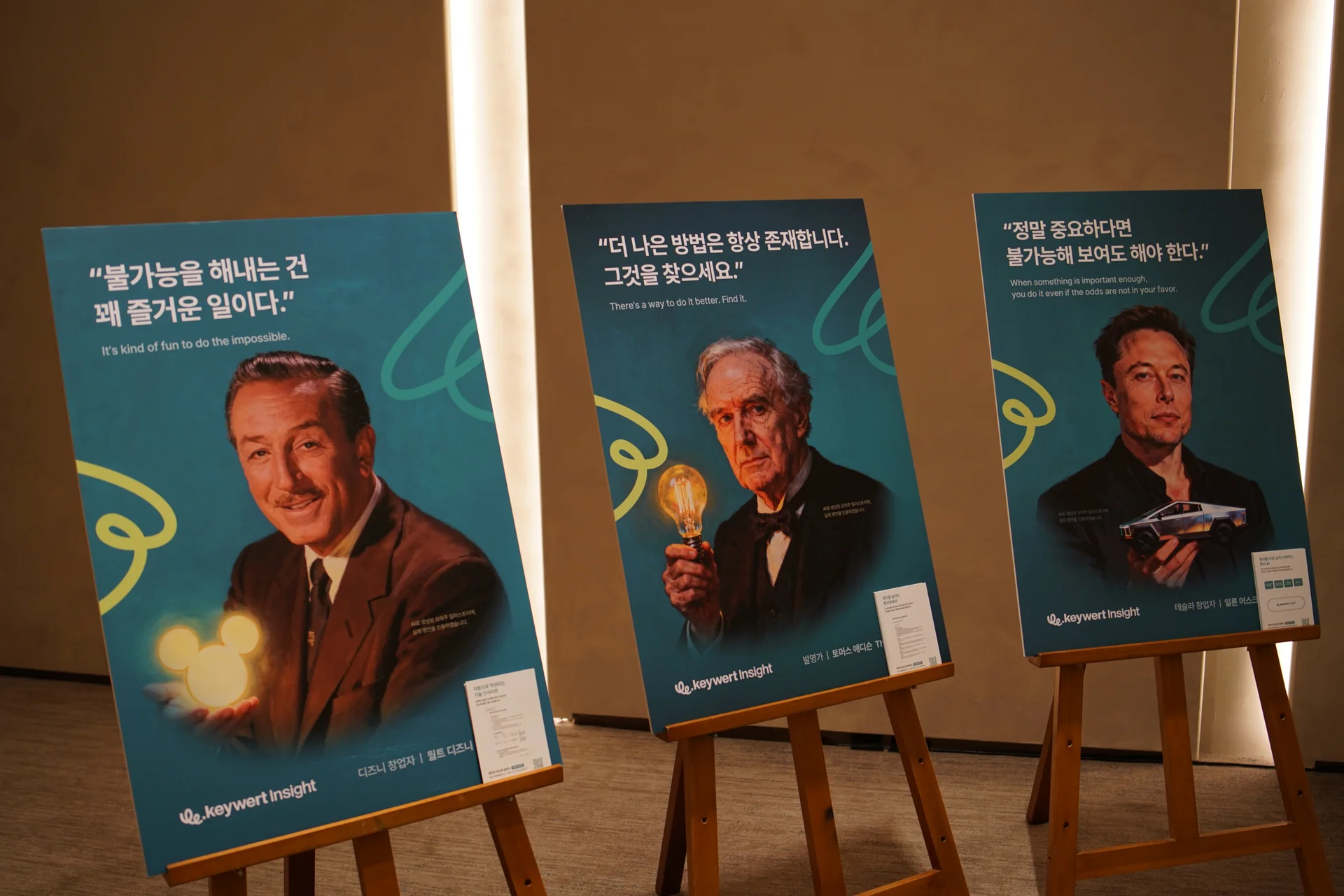 또한 창업주와 발명가들의 명언을 담은 카드와 함께, 키워트 인사이트가 전하는 가치와 철학을 직관적으로 경험할 수 있었습니다.