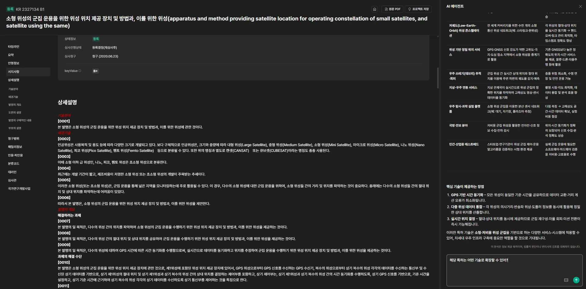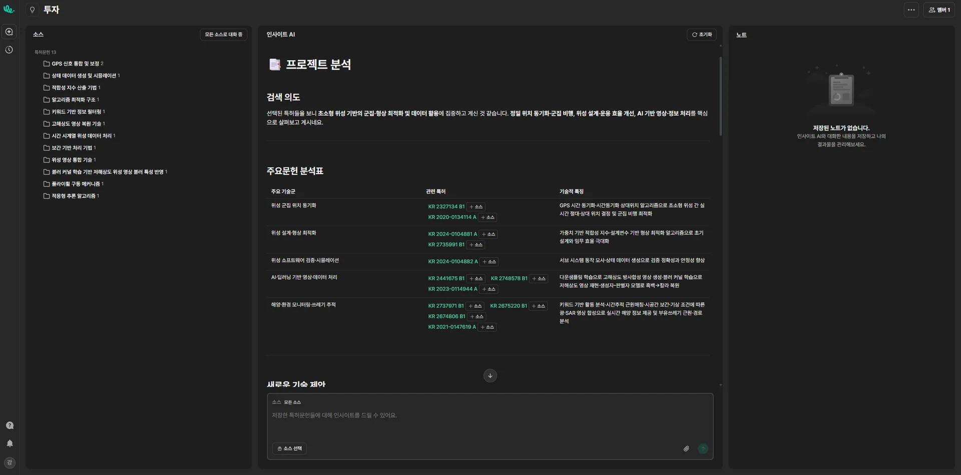 지금까지 나라스페이스의 핵심 특허를 분석하고 인사이트를 도출해봤습니다. 하지만 한건의 특허를 통해 분석하는 것은 부족하다 생각되어 나라스페이스의 모든 특허를 저장하고 “인사이트 AI” 에게 의견을 물었습니다.