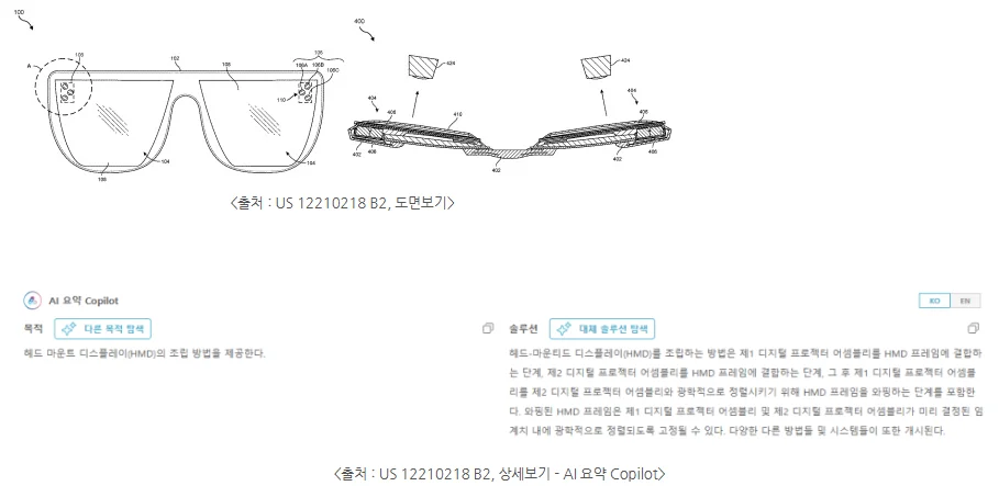 이제 각각의 스마트 글래스에 적용된 특허를 한번 볼까요?