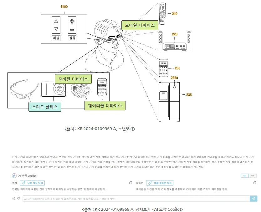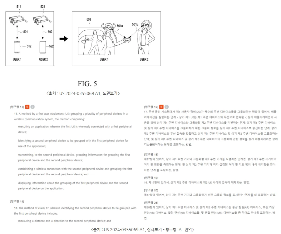 이 특허는 AR 기술 자체라기보다는, 스마트 글래스의 사용자 인터페이스 및 주변 전자기기와의 연결 기술에 가깝습니다.
