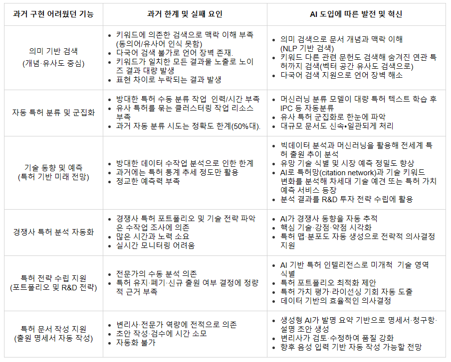 이처럼 AI 도입은 특허 정보 서비스의 성격을 완전히 바꾸고 있습니다.